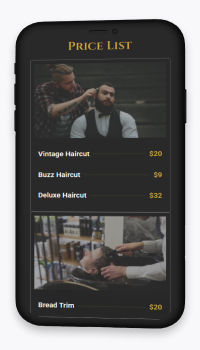 A barbearia precisava fortalecer sua presença digital e transmitir profissionalismo, sem perder a identidade masculina e sofisticada da marca. O desafio era organizar os serviços e destacar diferenciais em um layout claro e atrativo.